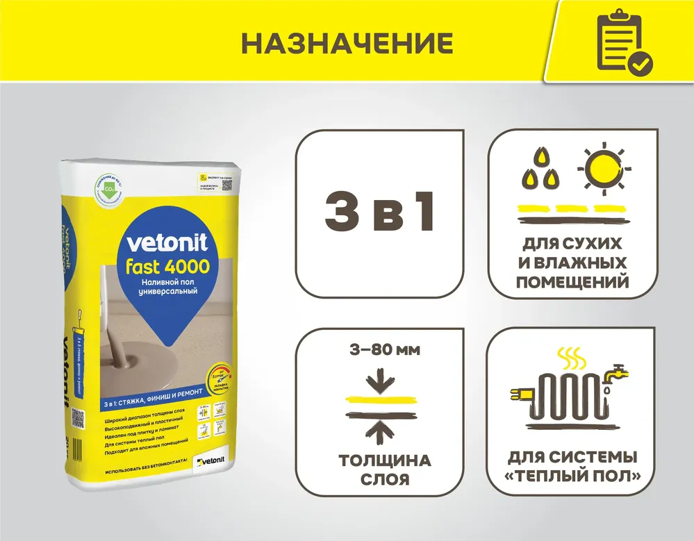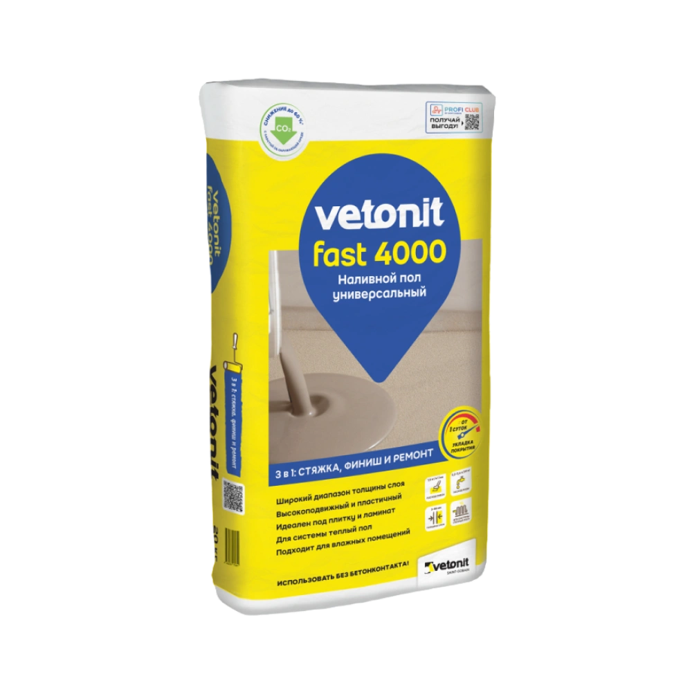 Универсальный наливной пол Ветонит фаст Vetonit fast 4000, 20 кг — товар для строительных и ремонтных работ для строительных, монтажных и хозяйственных задач.
