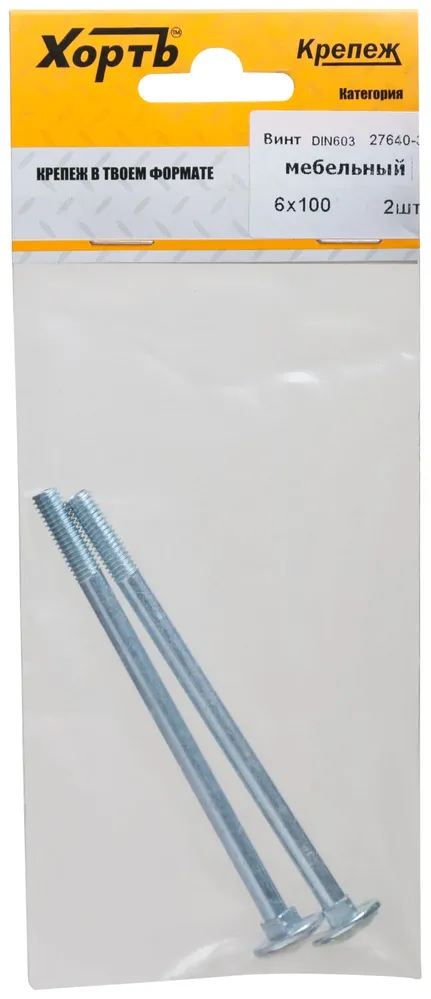 Винт мебельный (DIN 603) 6х100 (фасовка 2 10) — крепёжный элемент для монтажа, фиксации и сборки конструкций.