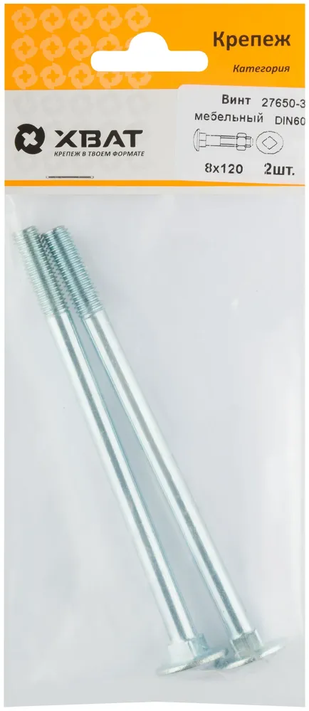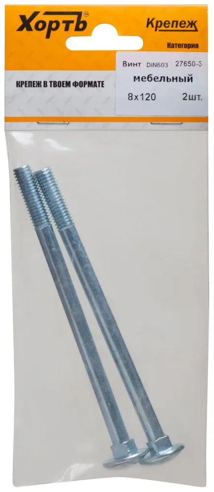 Винт мебельный (DIN 603) 8х120 (фасовка 2 10) — крепёжный элемент для монтажа, фиксации и сборки конструкций.