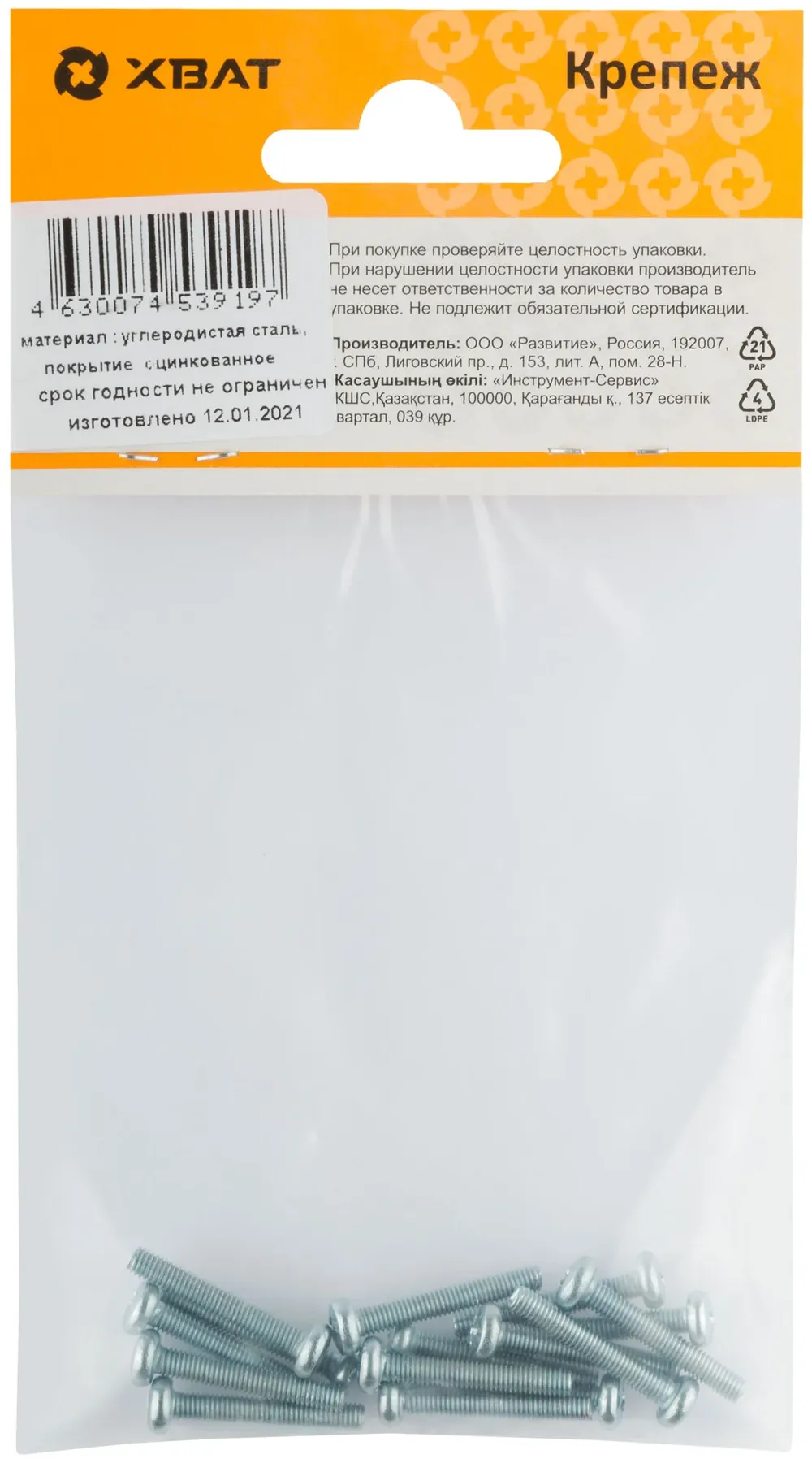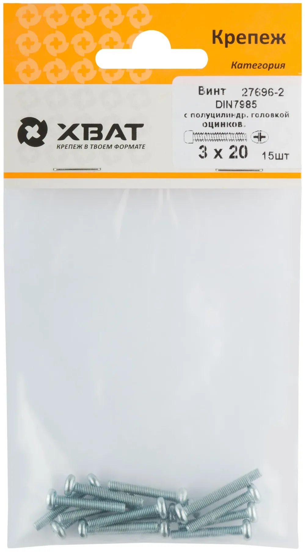 Винт с полуцилиндрич. головкой с полной резьбой оцинков. DIN 7985 3х20 15 10.(фасовка) — крепёжный элемент для монтажа, фиксации и сборки конструкций.