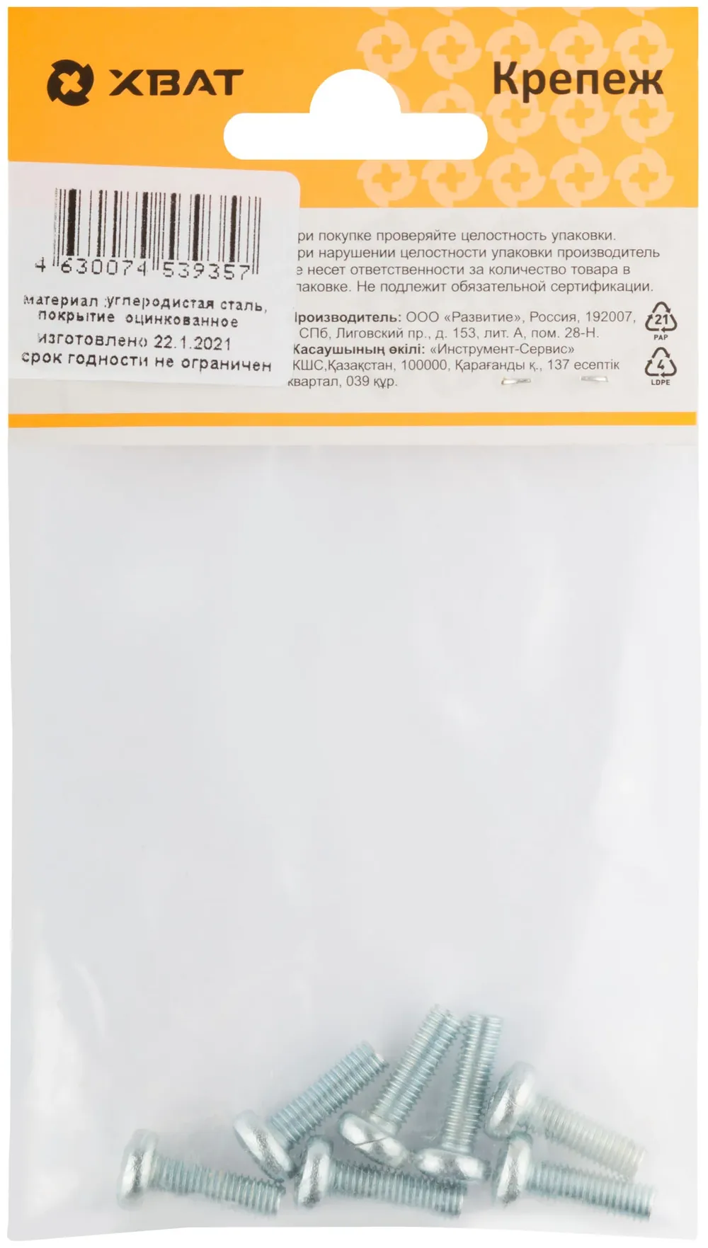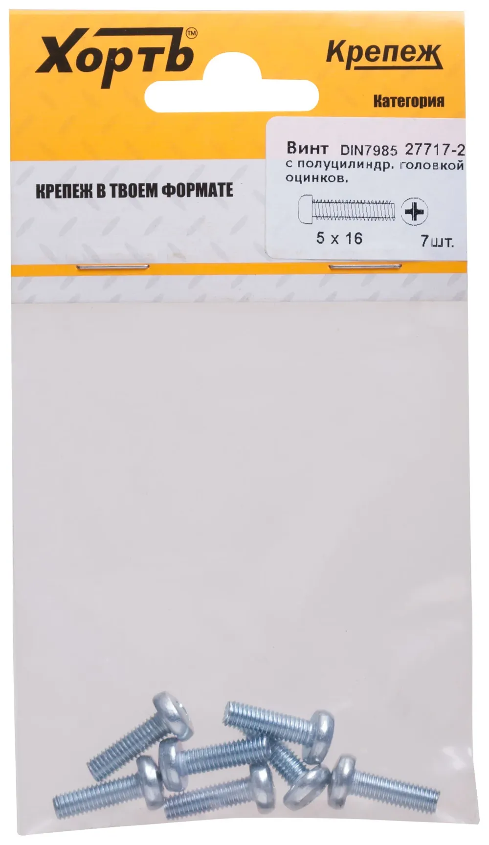Винт с полуцилиндрич. головкой с полной резьбой оцинков. DIN 7985 5х16 7 10.(фасовка) — крепёжный элемент для монтажа, фиксации и сборки конструкций.
