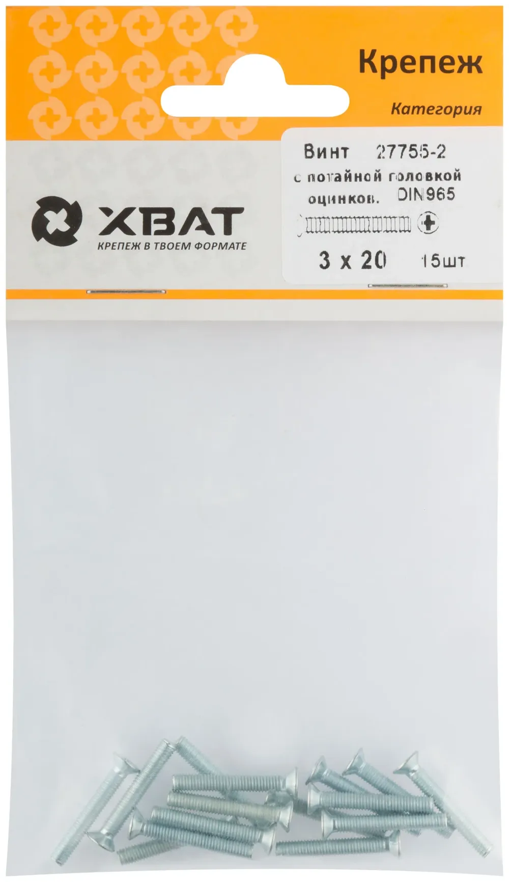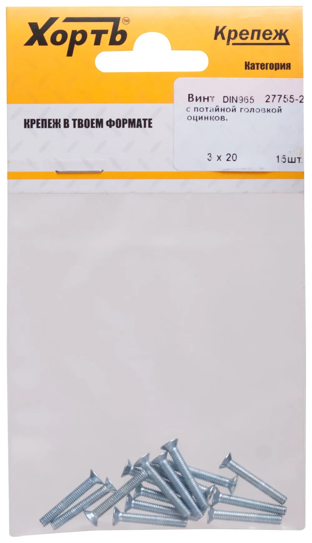Винт с потайной головкой с полной резьбой оцинкованный DIN 965 3х20 15 10.(фасовка) — крепёжный элемент для монтажа, фиксации и сборки конструкций.