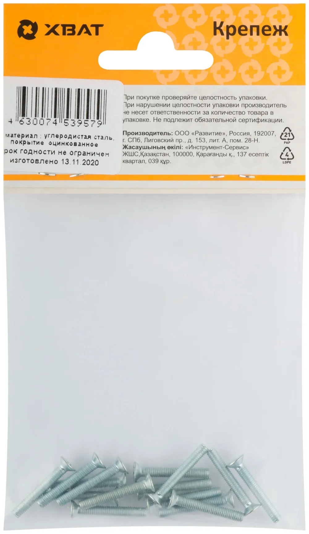 Купить недорого Винт с потайной головкой с полной резьбой оцинкованный DIN 965 3х20 15 10.(фасовка) в Москве