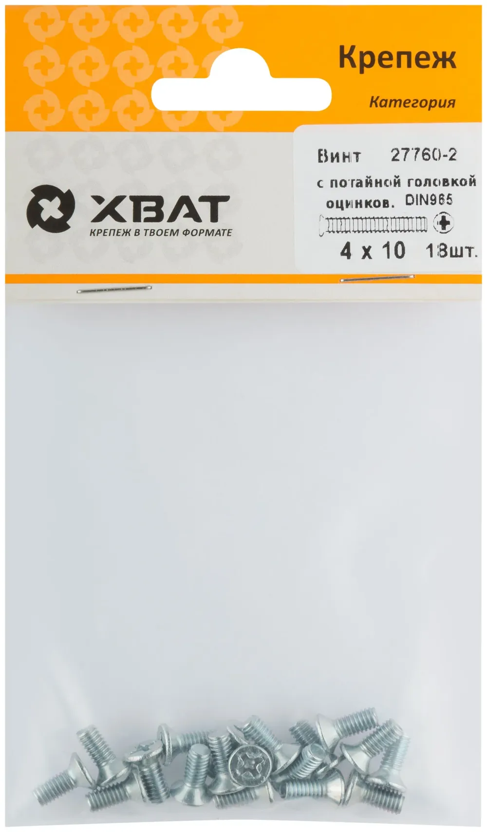 Винт с потайной головкой с полной резьбой оцинкованный DIN 965 4х10 18 10.(фасовка) — крепёжный элемент для монтажа, фиксации и сборки конструкций.