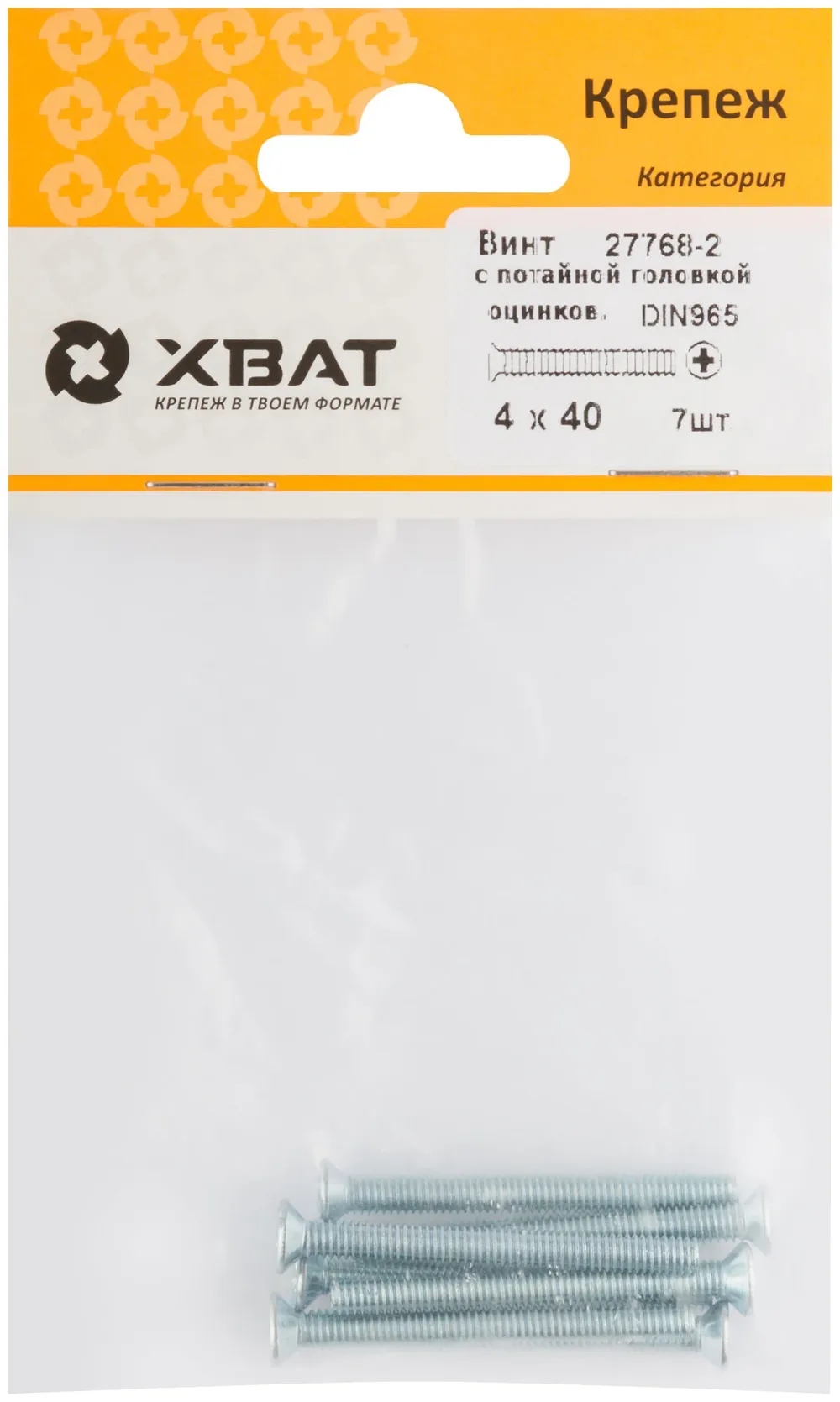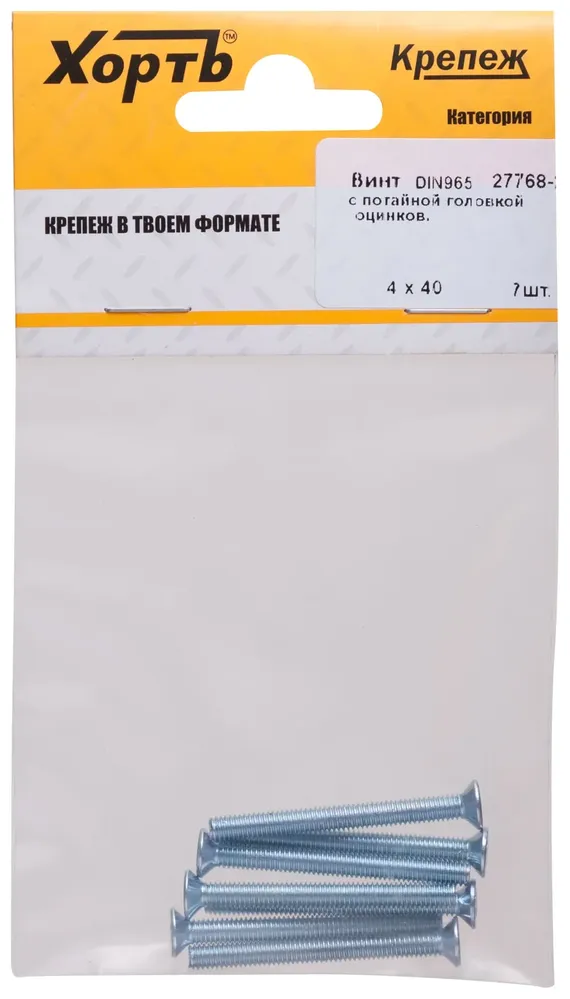 Винт с потайной головкой с полной резьбой оцинкованный DIN 965 4х40 7 10.(фасовка) — крепёжный элемент для монтажа, фиксации и сборки конструкций.