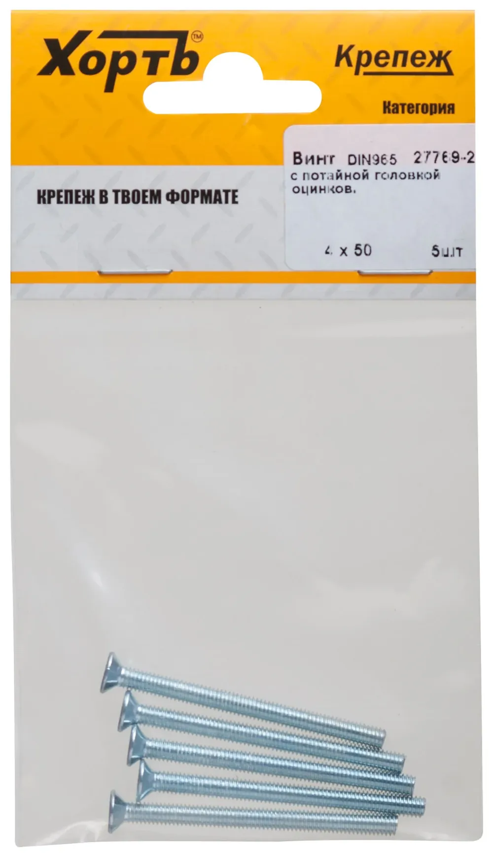Винт с потайной головкой с полной резьбой оцинкованный DIN 965 4х50 5 10.(фасовка) — крепёжный элемент для монтажа, фиксации и сборки конструкций.