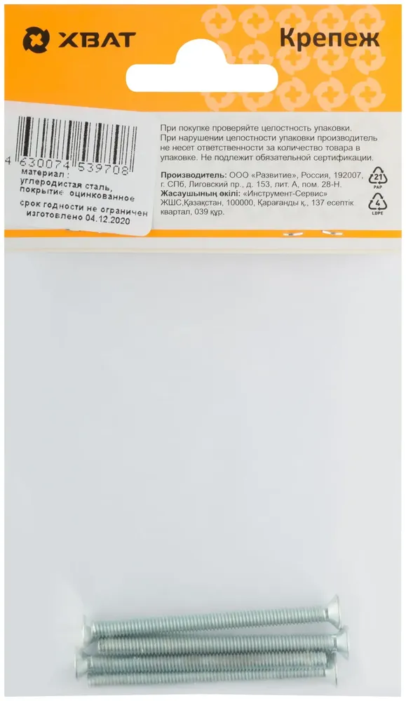 Купить недорого Винт с потайной головкой с полной резьбой оцинкованный DIN 965 4х50 5 10.(фасовка) в Москве
