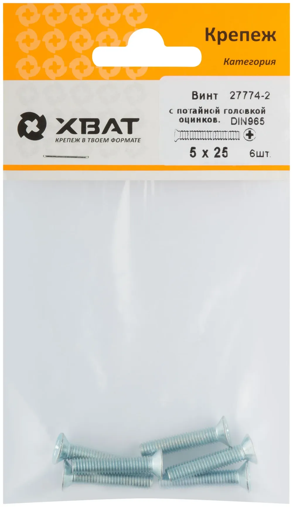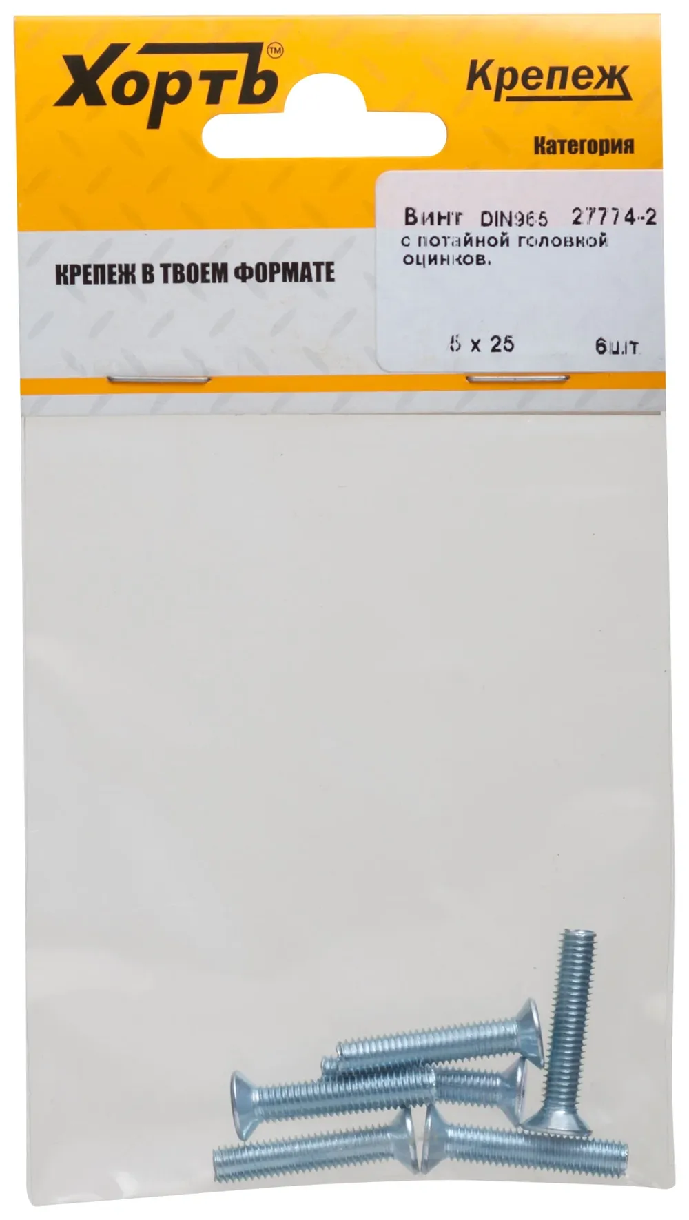 Винт с потайной головкой с полной резьбой оцинкованный DIN 965 5х25 6 10.(фасовка) — крепёжный элемент для монтажа, фиксации и сборки конструкций.