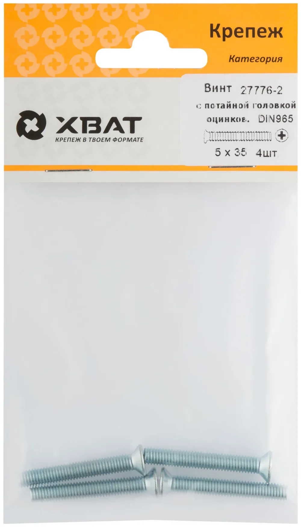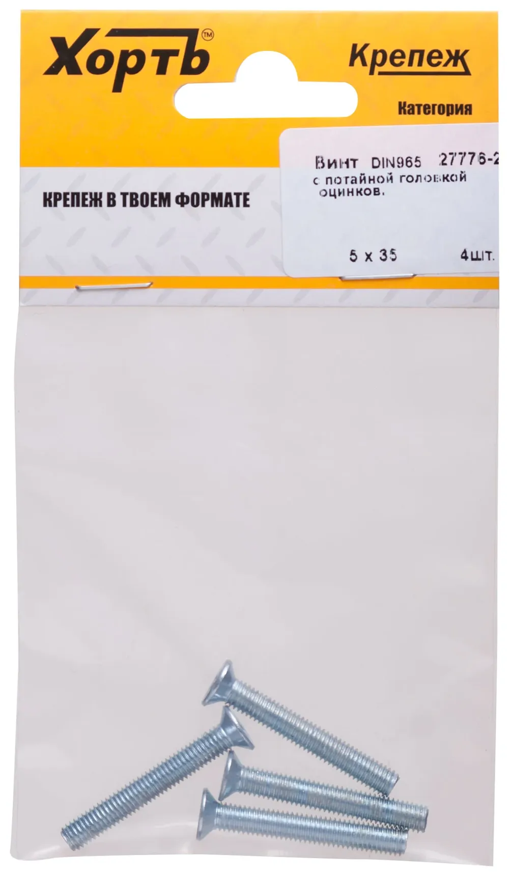 Винт с потайной головкой с полной резьбой оцинкованный DIN 965 5х35 4 10.(фасовка) — крепёжный элемент для монтажа, фиксации и сборки конструкций.