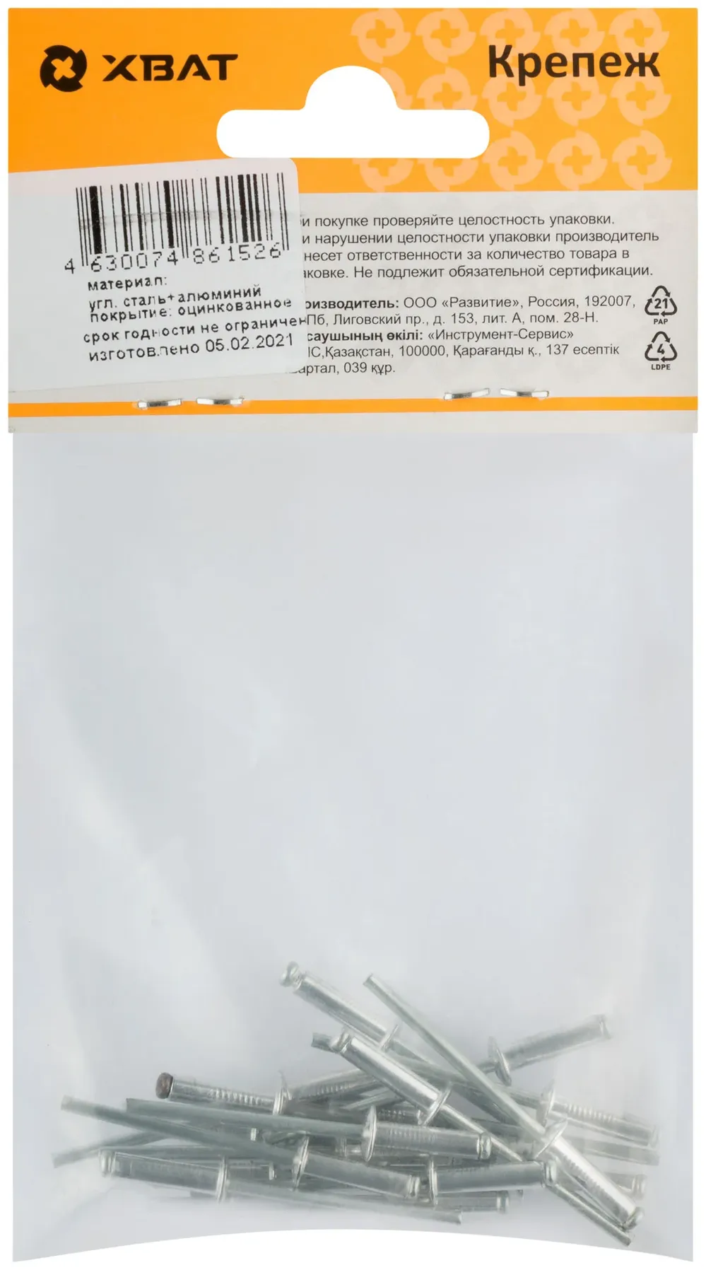 Заклепки вытяжные комбинированные, алюминий-сталь 3,2 х 12 (фасовка 17 10.) — крепёжный элемент для монтажа, фиксации и сборки конструкций.