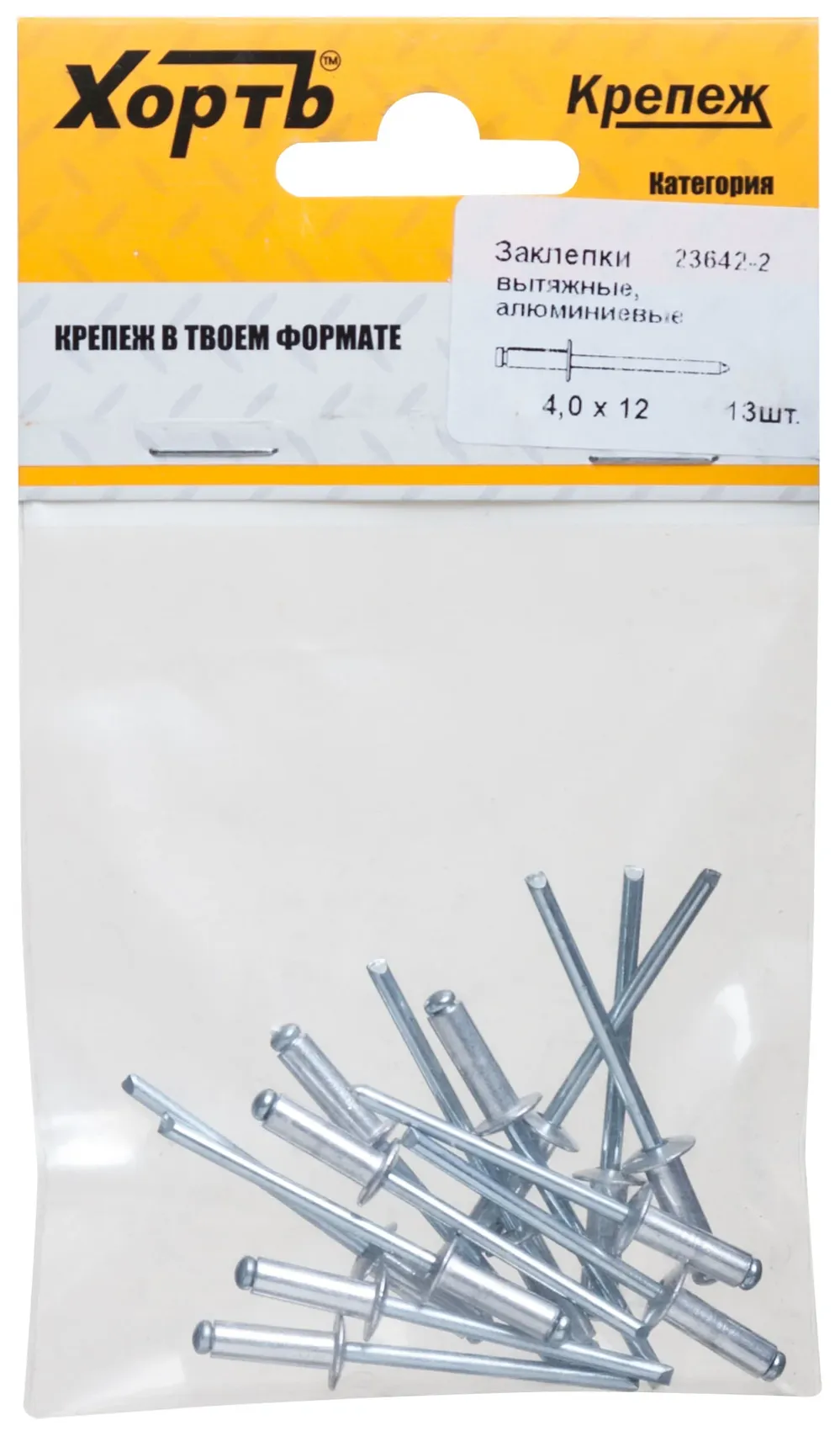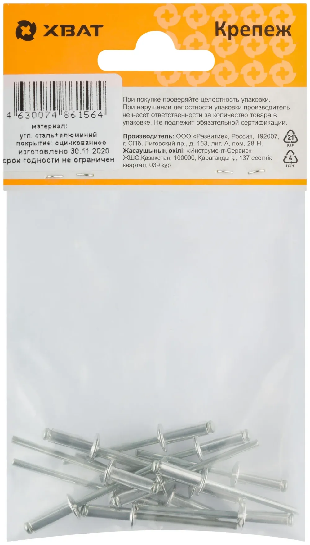 Заклепки вытяжные комбинированные, алюминий-сталь 4,0 х 12 (фасовка 13 10.) — крепёжный элемент для монтажа, фиксации и сборки конструкций.