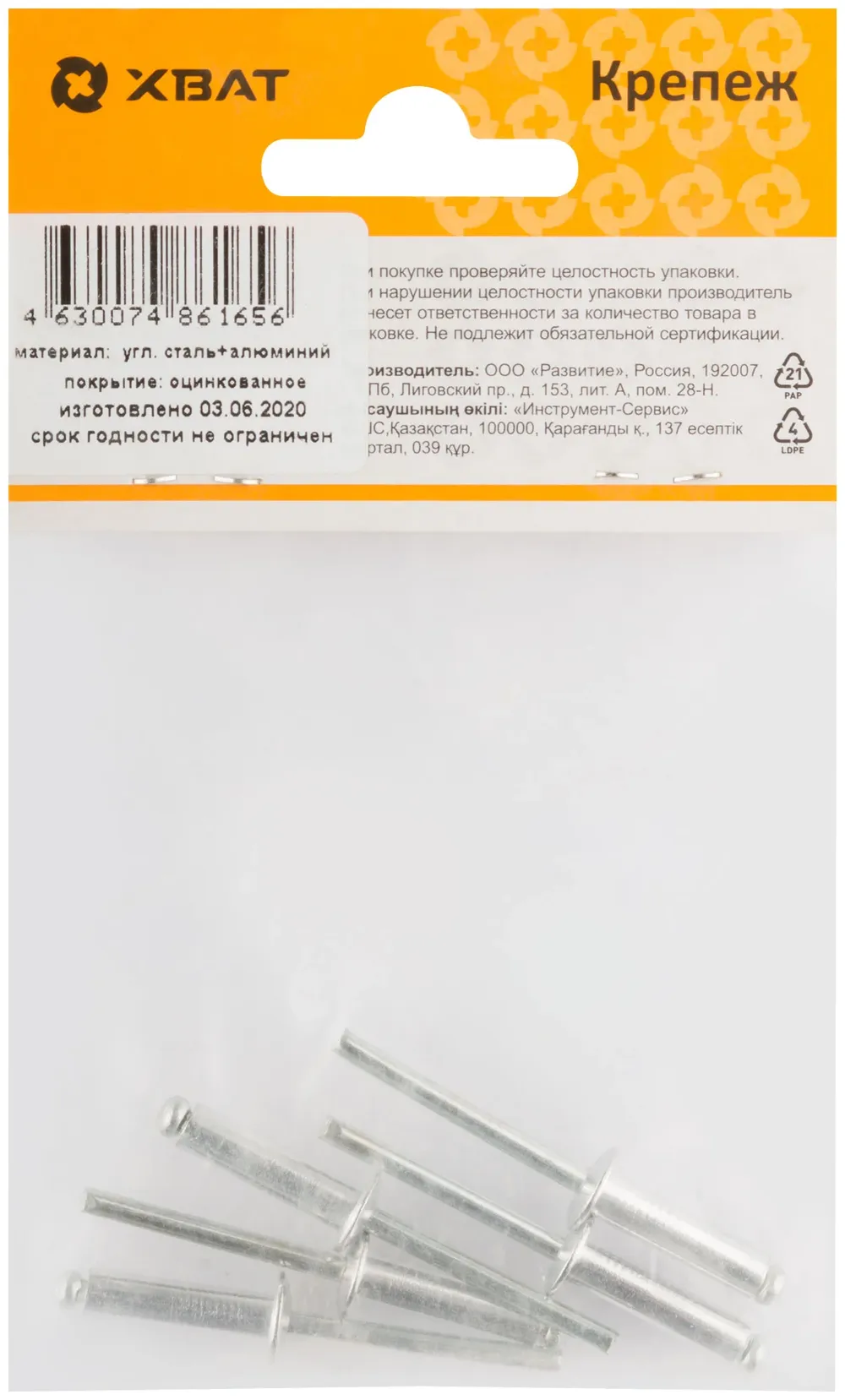 Заклепки вытяжные комбинированные, алюминий-сталь 4,8 х 18 (фасовка 5 10.) — крепёжный элемент для монтажа, фиксации и сборки конструкций.