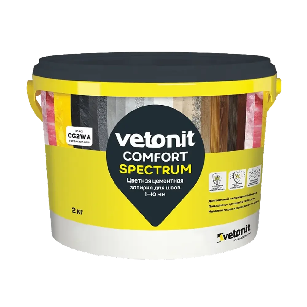 Затирка цементная Vetonit Comfort Spectrum 10 Чёрный 2 кг — материал для отделочных работ для подготовки, укладки и финишной отделки поверхностей.